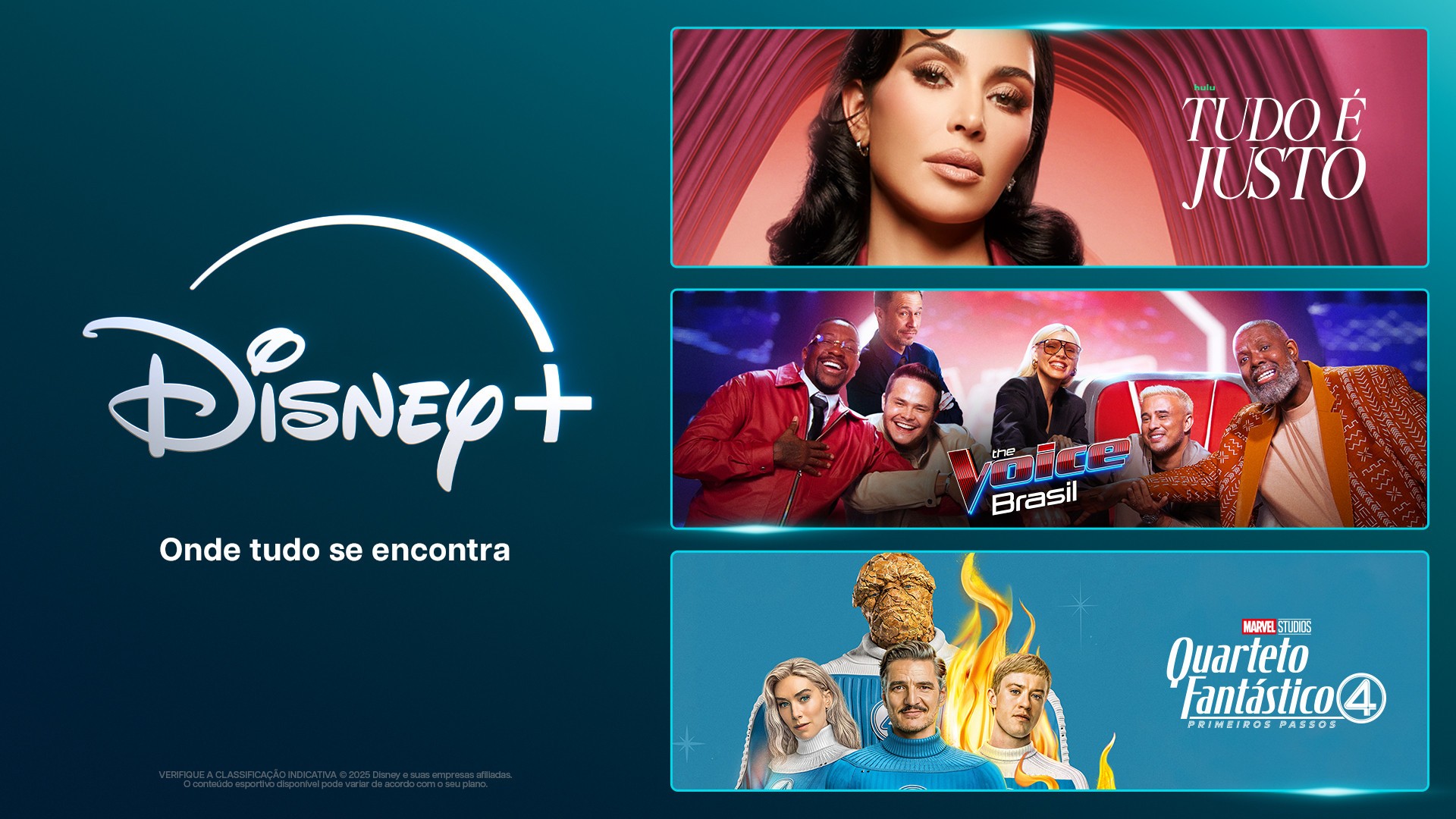 Estreias de filmes, séries originais e clássicos da Disney, Pixar, Marvel, Star Wars, National Geographic, ESPN e Hulu.